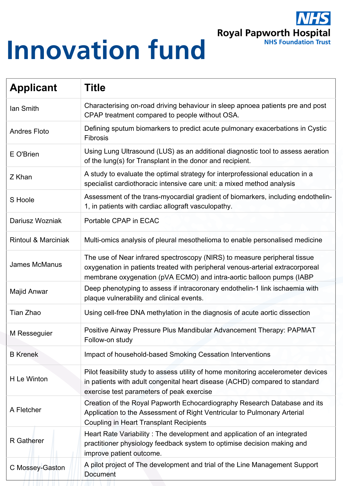 The Innovation Fund is a collaboration with Royal Papworth Hospital Charity.